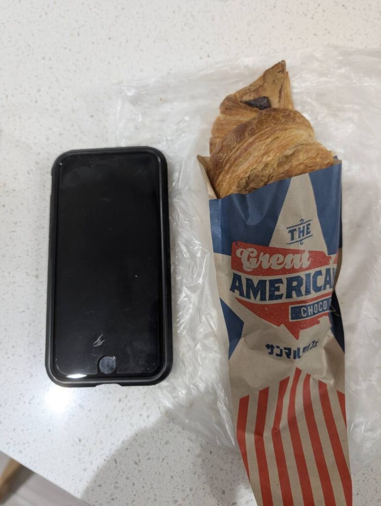普通のチョコクロは買わないので、スマホ(iPhoneSE3)を置いてみましたが、分かりにくいですね笑
