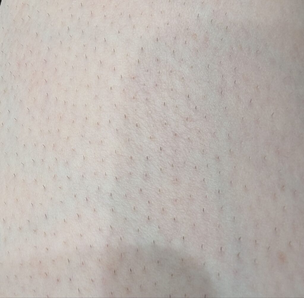 ちなみにちなみに、自己剃毛はこのくらいの剃り感で問題なしでした。(太もものアップ、キモっ)