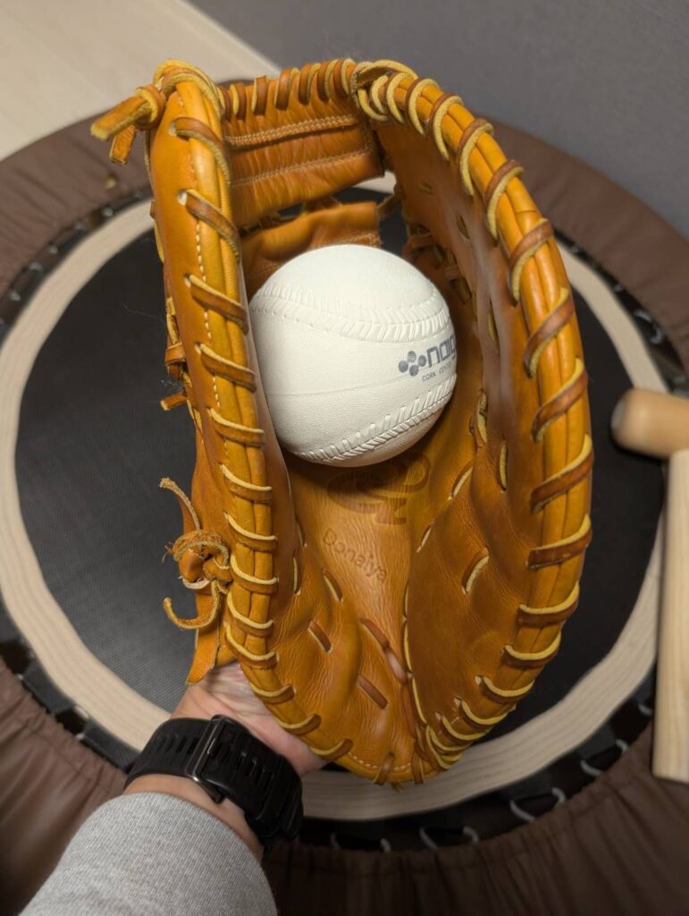そして、この弾くというのもソフトボールだけの問題なようで、野球の軟球を受けると、全く弾かない最高の気持ち良ミットです笑