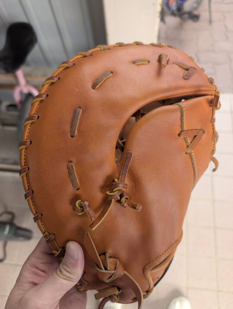 こちらのファーストミットを柔らかくする方向でモノにしようという試みです。
