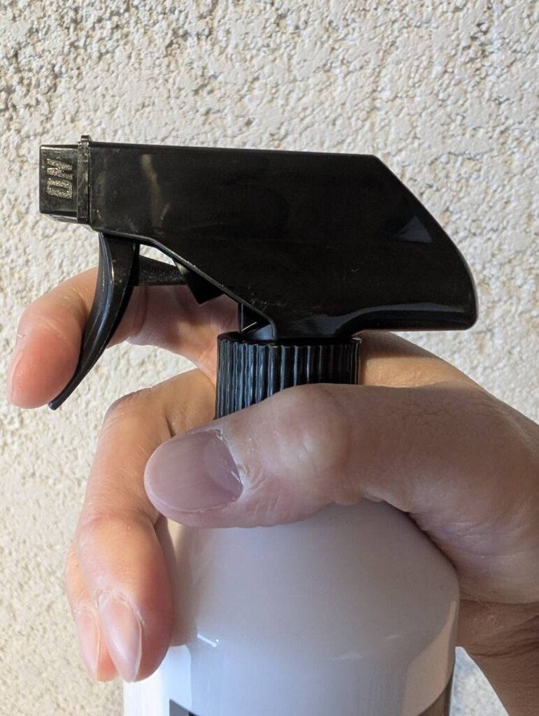 かけていきます。このトリガー、チープな霧吹きというわけではなく、しっかりしていて非常に使いやすいです(通常版は少し形状が違うようなので、感触が異なるかもしれません)。そして霧が非常に良い感じで噴出されます!!細かさ、広がり、密度の一定感、私的には完璧、文句なしです。